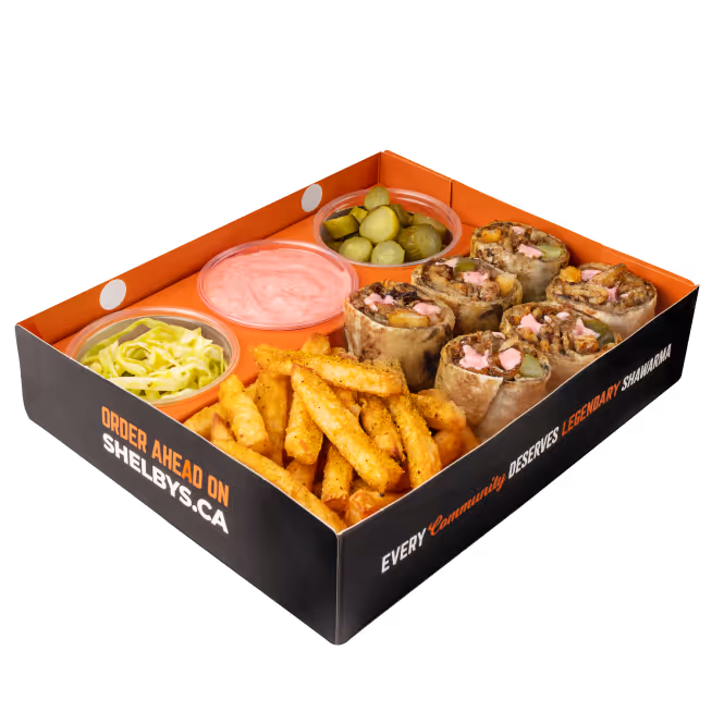 Every menu item is made fresh and made to be one of the best you've ever tasted. Shelby's™ is a fast casual shawarma chain born in London, Ontario, on a mission to modernize the shawarma in unspeakable ways while also helping to spread happiness and the appetite for good food and good flavour in communities.